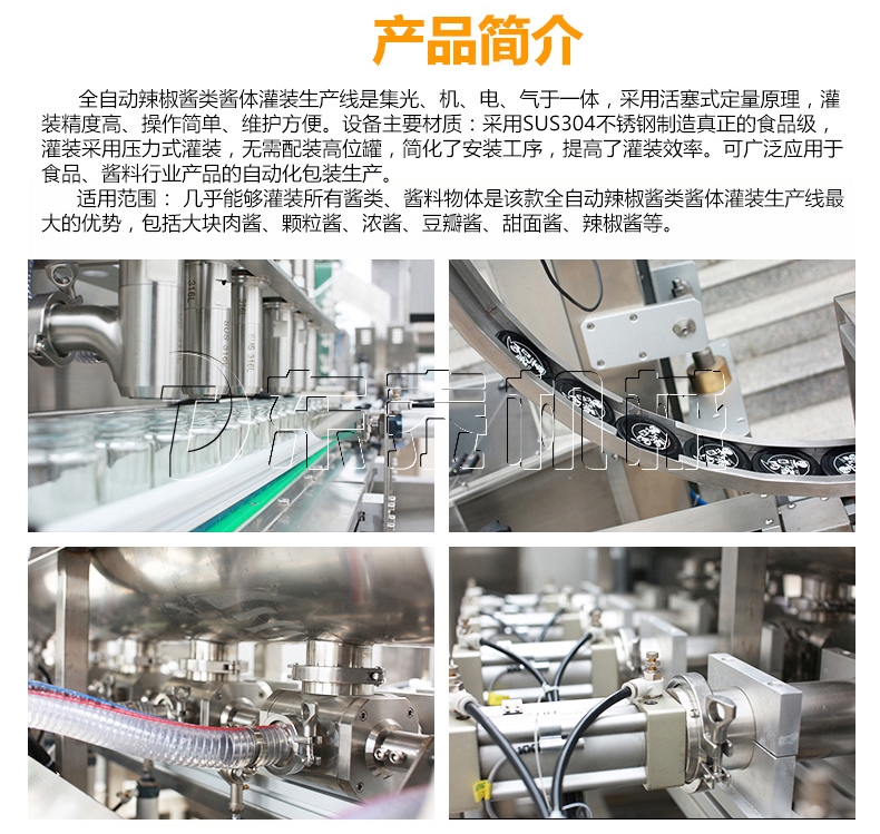適用物料 : 適用于辣椒醬的灌裝,同樣也適用于牛肉丁醬、蝦醬、豆瓣醬、魚子醬的灌裝