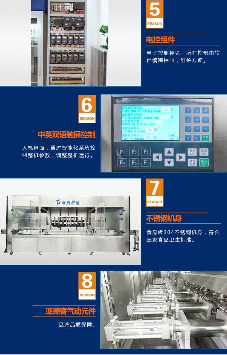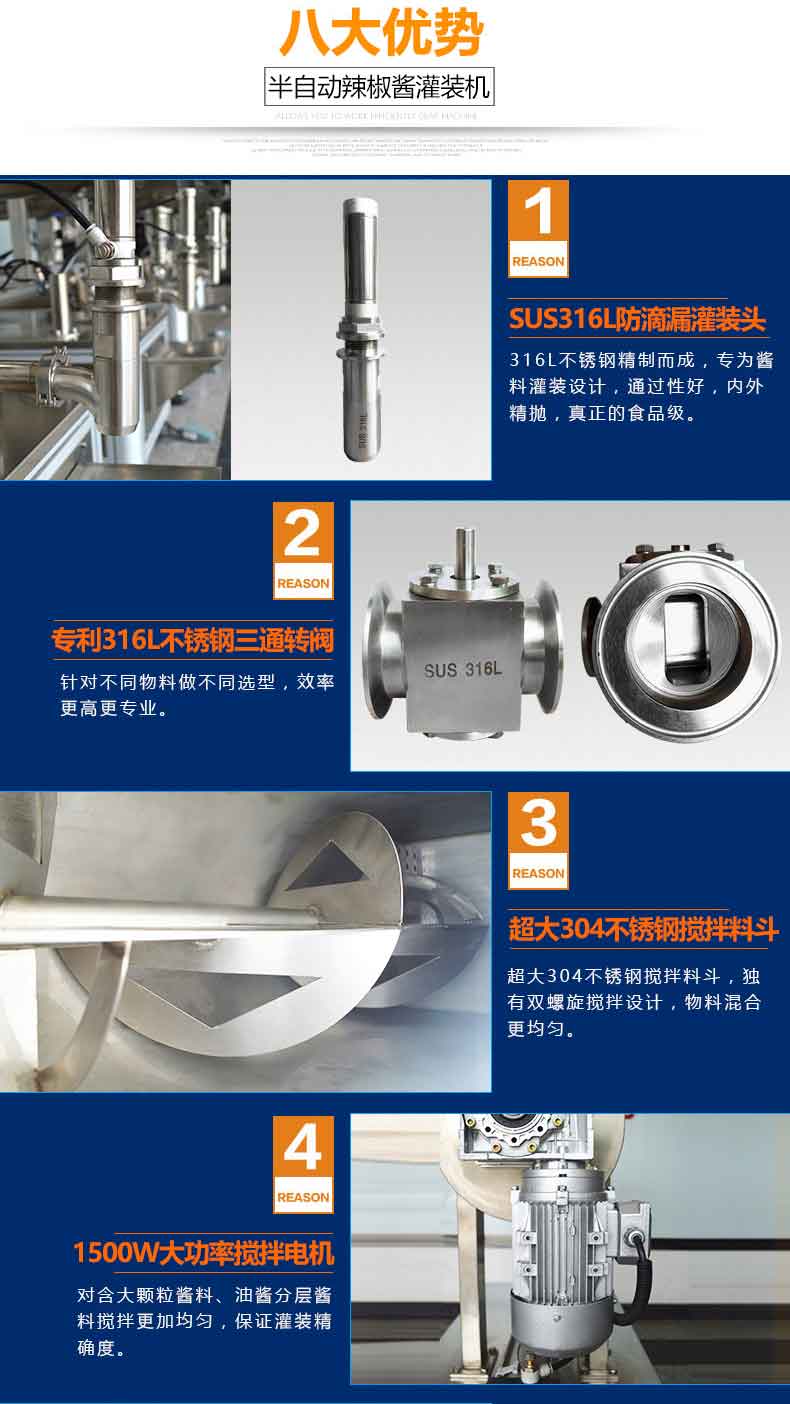2、進(jìn)口減速電機(jī)無極調(diào)速控制灌裝柱塞缸,不僅適合各種膏體,亦適合醬料。