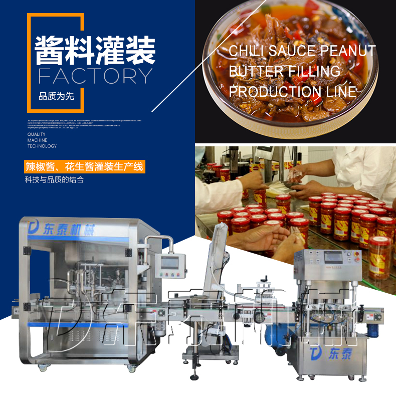 error   設(shè)備簡介: 該2000瓶辣椒醬灌裝線適合中小口徑三旋、四旋玻璃瓶調(diào)味醬的分裝,適合醬料、含顆粒黏稠物料的灌裝,物料接觸部分均采用31