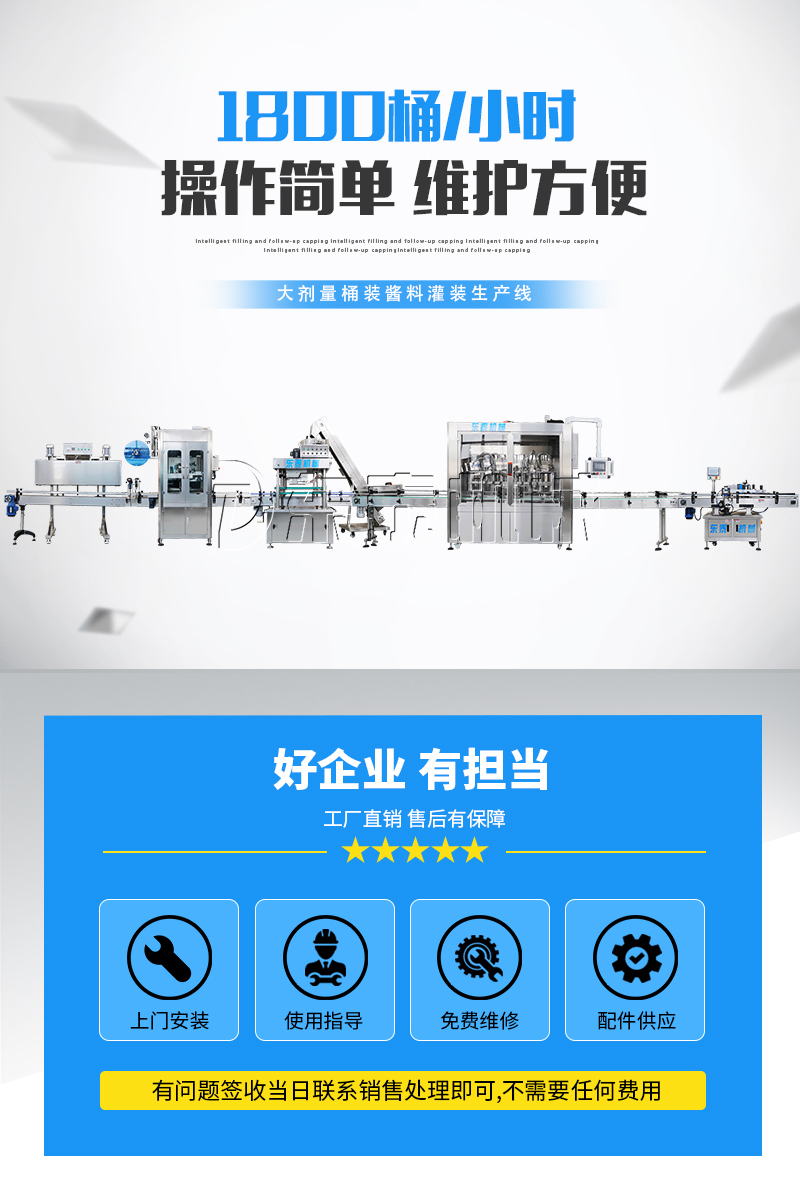 該系列甜面醬灌裝機(jī)生產(chǎn)線采用活塞式伺服系統(tǒng)驅(qū)動(dòng)原理,適用于粘流體中帶小顆粒并且可流動(dòng)的較為粘稠的物料灌裝。比如:洗衣液、洗潔精、甜面醬、沙拉醬、芝麻醬、食用油等的灌裝。設(shè)備采用伺服系統(tǒng)定量推料,在人機(jī)界面數(shù)字化調(diào)節(jié)計(jì)量,并且可設(shè)定所需計(jì)量,觸摸屏一觸即達(dá),而且可以單頭微調(diào)計(jì)量。操作簡(jiǎn)單,維護(hù)方便,節(jié)省人工成本,生產(chǎn)效率更高。