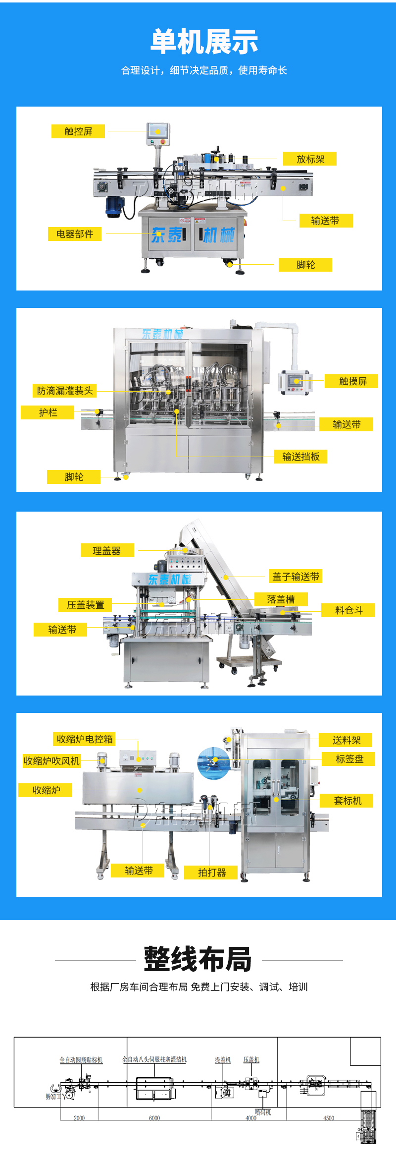 山東東泰機(jī)械制造有限公司是小包裝油類包裝線、軟包裝油類灌裝機(jī)、溶液灌裝機(jī)、填充機(jī)及后段包裝設(shè)備、工業(yè)機(jī)器人等產(chǎn)品專業(yè)生產(chǎn)加工的公司,擁有完整、科學(xué)的質(zhì)量管理體系。 山東東泰機(jī)械制造有限公司的誠信、實(shí)力和產(chǎn)品質(zhì)量獲得業(yè)界的認(rèn)可。 歡迎各界朋友蒞臨參觀、指導(dǎo)和業(yè)務(wù)洽談。