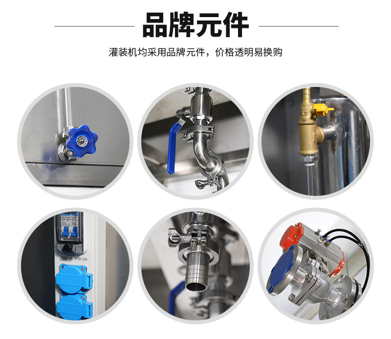 1.灌裝頭采用國家知識產(chǎn)權(quán)局認(rèn)證的實用新型專利:真空回吸防滴漏灌裝頭;專利證號:ZL201320358214.7;專利認(rèn)證時間為:2013年6月。專利設(shè)計及真空回吸系統(tǒng)保證灌裝過程中無滴漏現(xiàn)象,不會污染輸送鏈板和瓶體,灌裝頭和氣缸采用分體式機構(gòu),可單獨拆卸,不會出現(xiàn)液體滲漏損壞氣缸的情況。進(jìn)口亞德客氣缸經(jīng)久耐用,其他密封等配件使用標(biāo)準(zhǔn)件,更換維護(hù)簡單方便。