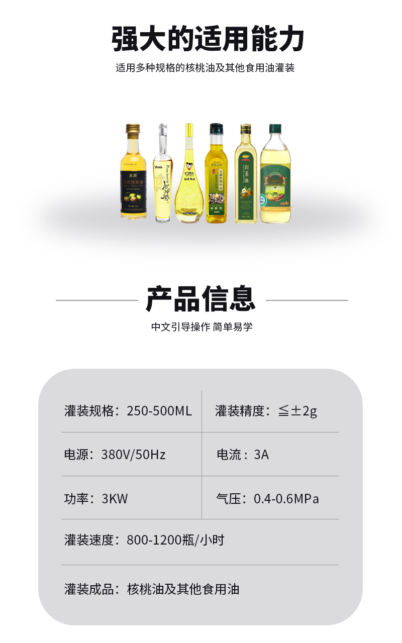 1.灌裝容量:250-500毫升