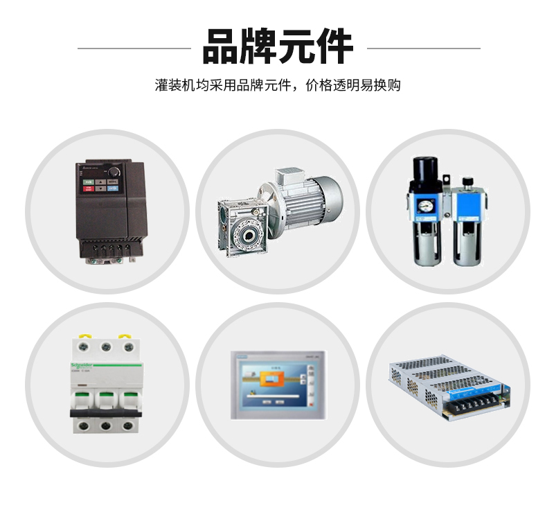 5、本灌裝旋蓋機(jī)主要電器元件均采用國外知名品牌。