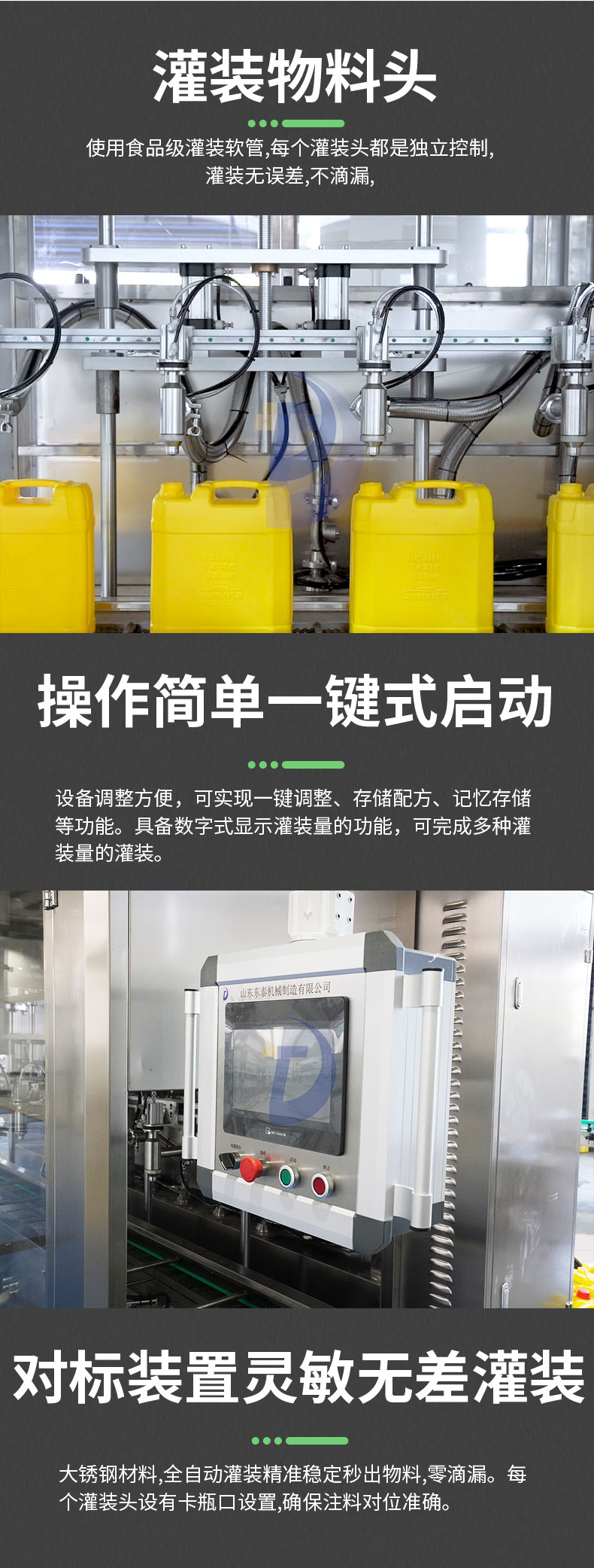 山東東泰機械制造有限公司是小包裝油類包裝線、軟包裝油類灌裝機、溶液灌裝機、填充機及后段包裝設(shè)備、工業(yè)機器人等產(chǎn)品專業(yè)生產(chǎn)加工的公司,擁有完整、科學的質(zhì)量管理體系。 山東東泰機械制造有限公司的誠信、實力和產(chǎn)品質(zhì)量獲得業(yè)界的認可。 歡迎各界朋友蒞臨參觀、指導和業(yè)務(wù)洽談。