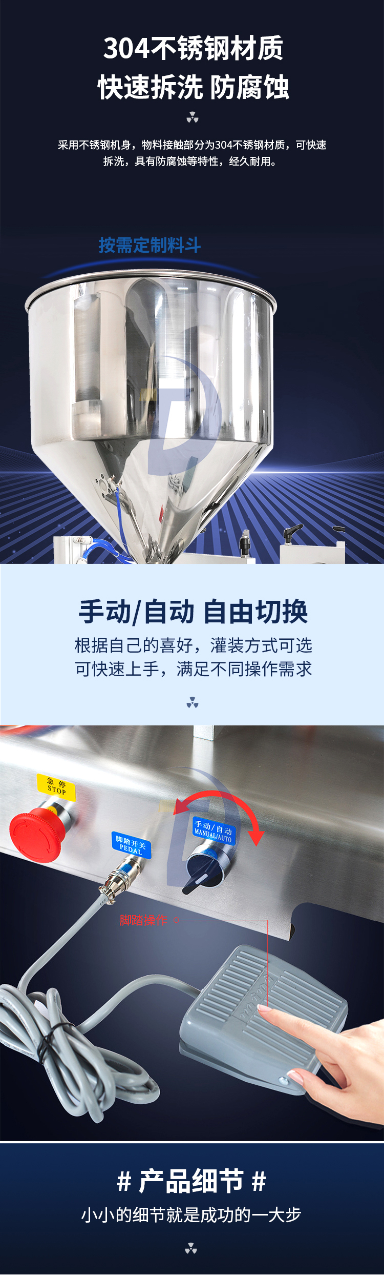 3.在對洗面奶、洗發(fā)水、化妝品、油墨、軟膏等膏體進行灌裝時,全部采用壓縮空氣做為控制,因此特別適合在對于有防爆要求的環(huán)境使用,具有高性。