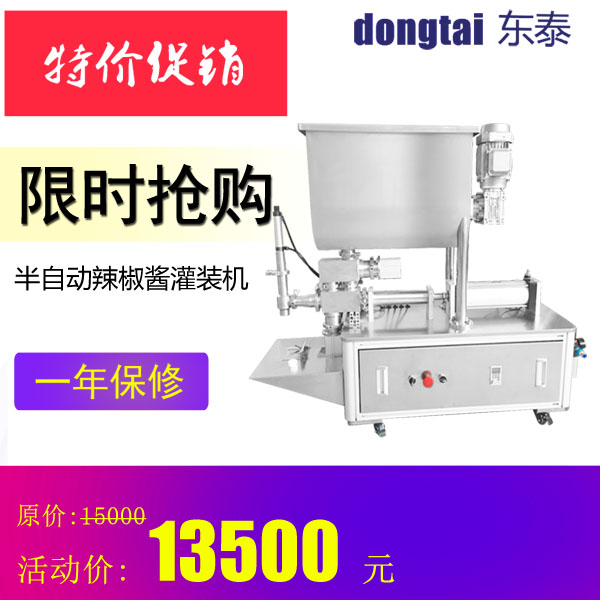 半自動醬類灌裝機專用于粘稠醬體、辣椒醬、拌面醬、大塊肉醬等物品的定量充填分裝,適合于將各類粘稠體及含有各種固體物質(zhì)如辣椒、花生、肉塊、佐料等物體的醬類灌裝于各種容器中,適用于牡蠣醬、豆鼓、辣椒醬、拌面醬等醬類灌裝。